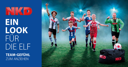 5 weitere GutscheineHobby-Kicker aufgepasst! Entdecke die perfekte Trainings-Ausrüstung für dich und dein Team – mit Trikots, Hosen und Stutzen in Wunschgröße und -farbe – und sichere dir mit dem NKD Knaller-Angebot das gesamte Set für nur 99,99€!